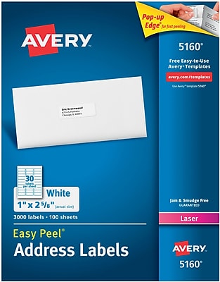 Shop staples for avery easy peel laser address labels, 1 x 2 5/8, white, 3000 labels per pack (5160) and enjoy fast and free shipping on qualifying orders.